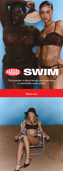 I led the art direction for Parade's 2025 swimwear line through logo creation, branding, and typography. I chose a trendy, bold typeface for the logo so that it could be reused for future swim launches as well. I was inspired my magazine layouts for the way the photos were arranged.